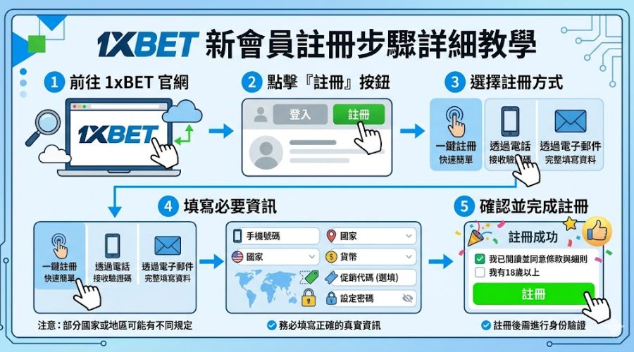只需完成以上簡單三步驟,您即可正式啟動 1xBET 帳號,進入全方位的高品質娛樂殿堂。現在就加入 1xBET 台灣,在尖端資安防護下享受極速儲值與多元賽事,開啟您的專屬贏家之路。